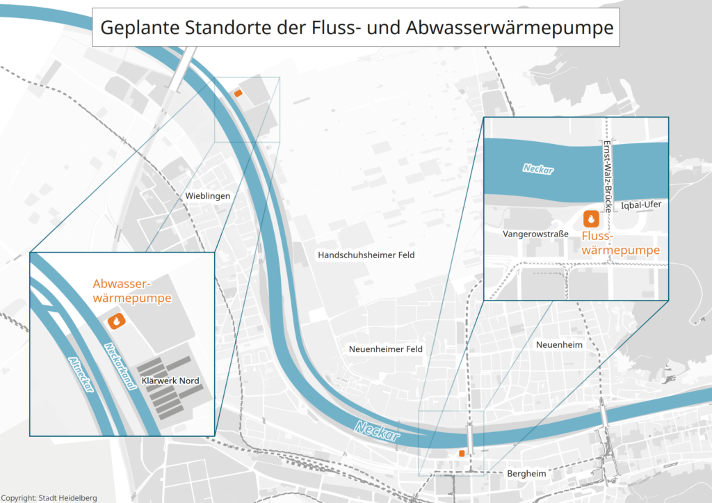 Die Stadtwerke Heidelberg (SWH) erhalten rund 86 Mio. Euro aus der Bundesförderung für effiziente Wärmenetze (BEW) für drei Projekte: Eine Flusswärmepumpe mit 30 MW Leistung am Neckar, eine Abwasserwärmepumpe mit 30 MW am Klärwerk Nord und Maßnahmen des Fernwärmenetzausbaus.